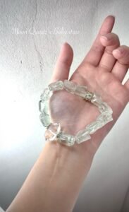 • 罕見冰塊切面:選用極具特色的「冰塊狀」綠阿塞斯特萊,保留礦石天然的不規則切面。每一顆晶石都如同凍結的清晨霧光,散發出清透而堅定的淺綠光芒,象徵著生機盎然的豐盛與成長。